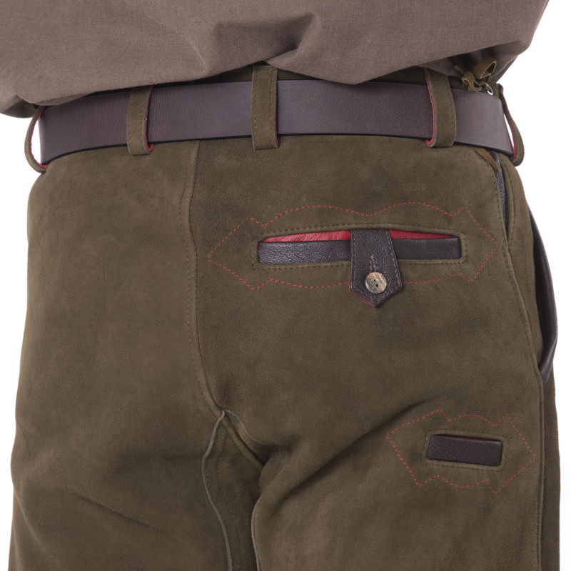 Le pantalon cuir hunter est très résistant et idéal pour aller traquer. Son renforcement en cuir au niveau des jambes peut être remplacé en cas d’usure.