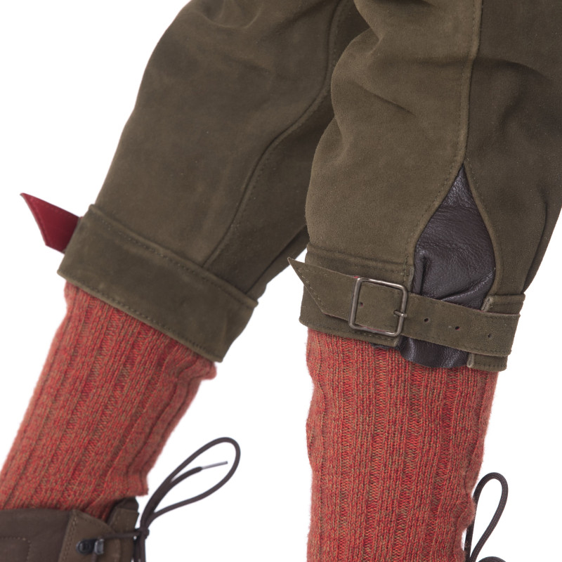 En bas du knickers cerf se trouve des boucles de serrage qui permettent de l’ajuster à la taille de vos mollets.